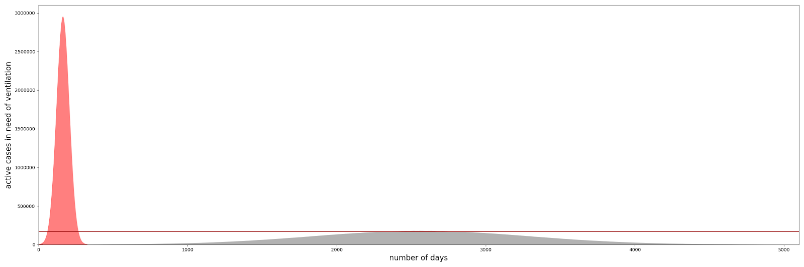 In statistics, the distribution is what matters, not the absolute number. There are around 40K traffic-related fatalities in the US, annually, but it never happens that we have weeks with 20K or so, which would overwhelm the medical system.